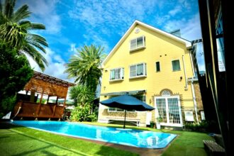 生見海岸から徒歩1分。海のすぐ目の前に建つ民宿。